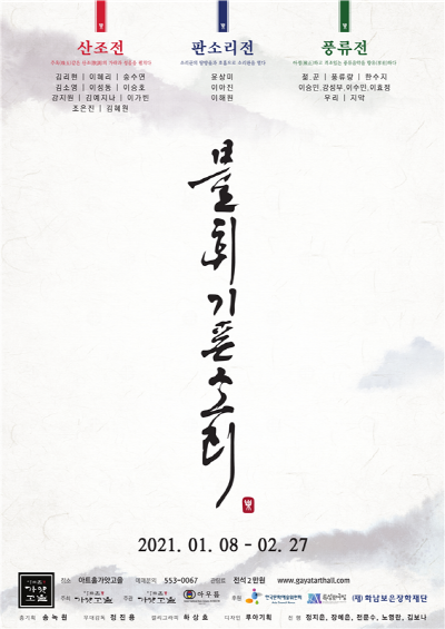 아트홀가얏고을(대표 송영숙)은 한국문화예술위원회(위원장 박종관)와 화남보은장학재단(이사장 송재륭)의 후원으로 2021 아트홀가얏고을 제3회 불휘기픈소리를 2021년 1월 8일부터 2월 27일까지 개최합니다. 아트홀가얏고을은 예술가들의 창작을 지원하는 공연 외에도 전통예술을 올곧이 계승할 수 있는 무대를 제작하고 있습니다. 올해로 3회째를 맞는 '불휘기픈소리'는 아트홀가얏고을의 주력 브랜드 공연으로, 1년여 가까이 이어진 세계적인 아픔으로 예술가들의 활동 영역 또한 좁아지는 이 때, 자신을 돌아보고 기량을 연마하며 성숙해질 수 있는 시간을 가진 20여 팀의 예술가 및 예술단체를 공개모집을 통해 선발하였습니다.